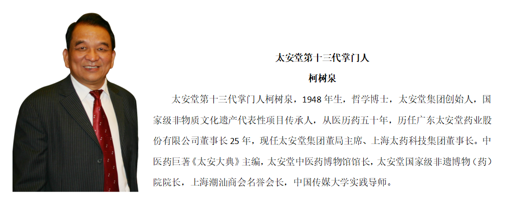 太安堂深厚的中醫藥文化底蘊熏陶、哺育了柯樹(shù)泉先生的成長(cháng),任醫二十五年后,升華價(jià)值追求,從中醫師到碩士研究生再到哲學(xué)博士,融精深中醫藥學(xué)、傳統哲學(xué)精髓、現代企業(yè)管理精華于一身,承繼中華民族海納百川的博大胸懷、自強不息的進(jìn)取精神、奉獻濟世的崇高理想,順天承運,勵精圖治,領(lǐng)導全體公司同仁從產(chǎn)品經(jīng)營(yíng)到產(chǎn)業(yè)擴張,從品牌經(jīng)營(yíng)向資本運作,將文化資源資產(chǎn)化,進(jìn)而資產(chǎn)資本化,形成企業(yè)公眾化,促進(jìn)中藥高科技,逐步構筑中型藥企,全力弘揚中醫藥國粹,秉德濟世,從“立業(yè)、立功”到“立德、立言”,實(shí)現太安堂復興、崛起,走向騰飛。